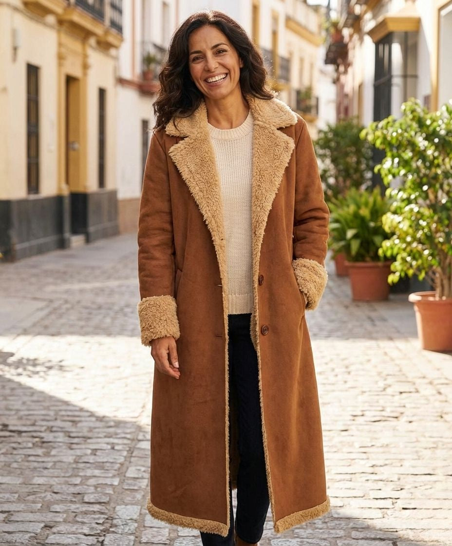 Descubre el Abrigo Valeria, donde la elegancia se encuentra con el máximo confort. Este diseño exclusivo combina un exterior sofisticado de efecto ante con un interior de pelo sintético ultra suave, creando una experiencia de lujo y calidez en cada movimiento.