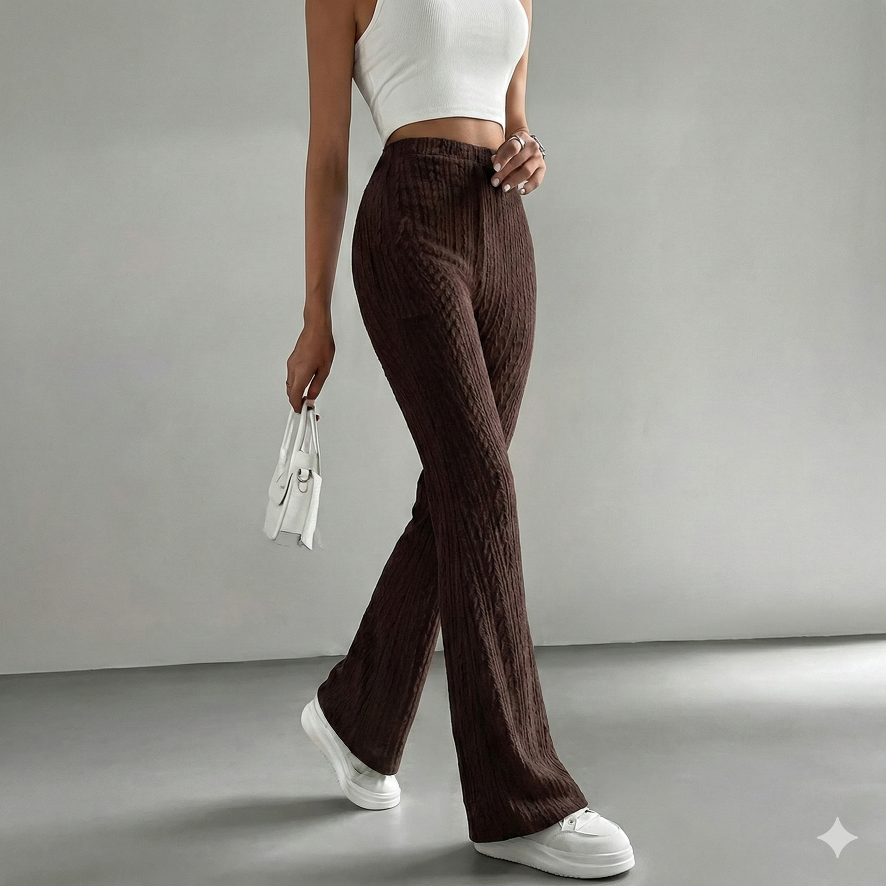 Añade un toque de calidez y sofisticación a tu armario con los Pantalones Vega. Su diseño de cintura alta estiliza tu figura al instante, mientras que su tono marrón tierra es la tendencia absoluta de la temporada. Confeccionados en un tejido ligero y con detalles de costura únicos, son la opción perfecta para quien busca comodidad sin renunciar a un estilo moderno y diferente.